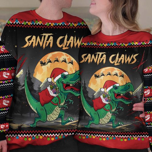 Santa Claws T-Rex Christmas Dinosaur Santa – Personalized Ugly Sweater